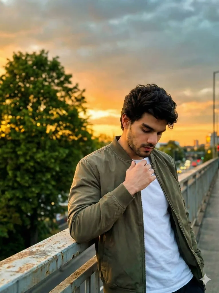 Using tools like ChatGPT with image AI platforms, you can recreate a stylish golden-hour portrait – complete with bomber jacket, city lights, and a thoughtful look. Here’s how to get it perfectly right.