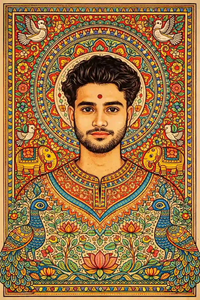 Prompt 1: Classic Mithila Portrait Transformation Prompt