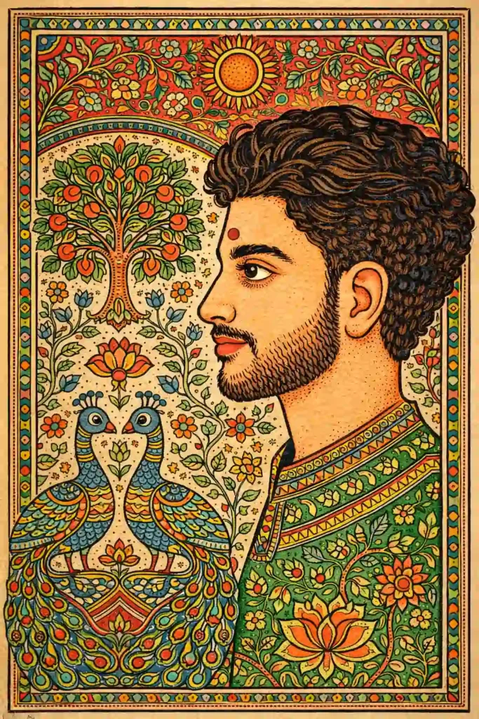 Prompt 3: Decorative Festival-Style Madhubani Prompt