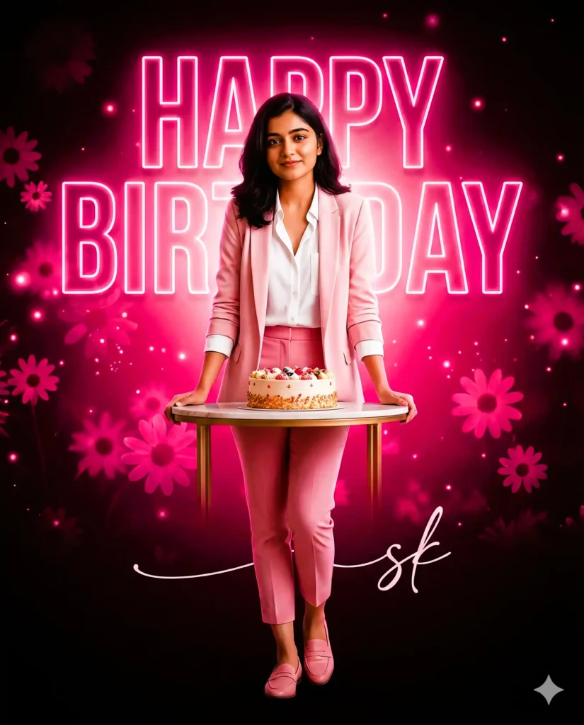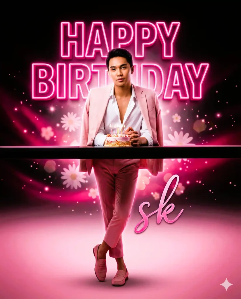 This cinematic pink birthday poster concept blends realism, style, and warmth in one clean frame.