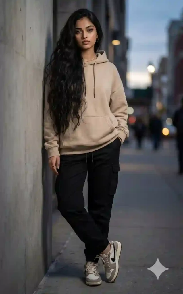 - Layered jacket or oversized hoodie